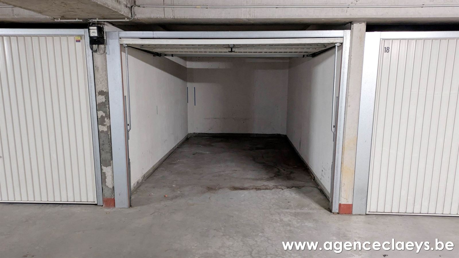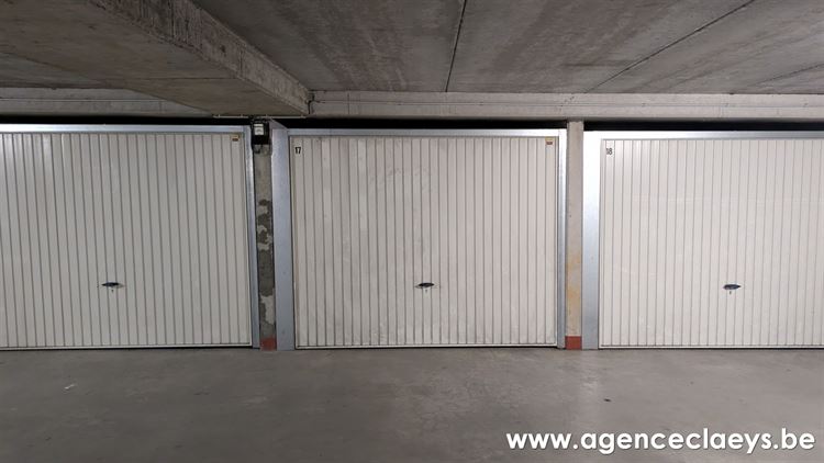 Goed gelegen afgesloten garagebox (nummer 17) te koop onder d'Annexe (Gemeentehuis) in de Leopoldlaan in De Haan.
